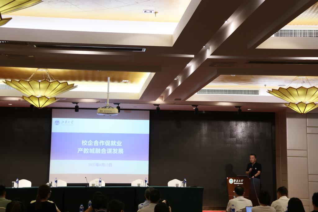 紧接着,赵建新发表了主题为校企合作促进就业产教城融合谋发展的讲话。他简要介绍了江南大学的发展历程,用历年的招生和就业数据说明江南大学毕业生的培养质量、特点与优势,希望进一步加深江南大学与各上市公司相互了解,促进彼此交流与合作。