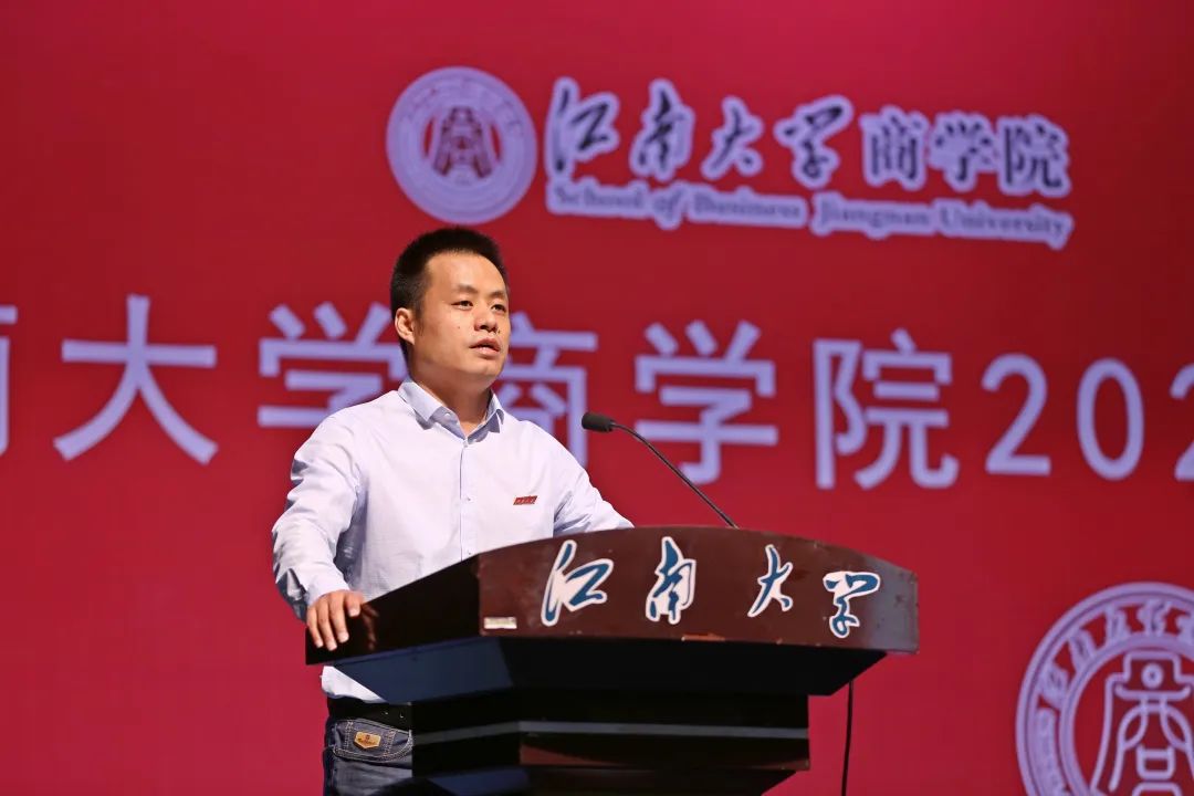 商学院工商管理硕士(MBA)新生、上铁车辆高新材料江苏有限公司总经理左德锋作为MBA教育中心学生代表发言,他从两方面定位研究生身份:一是知识的接受者和创造者;二是所在专业项目的学习者和推动者。两方面的定位表现出左德锋同学对学业和责任的明确认知。同时,他表现出的爱院、爱校、爱业、爱国情怀更是打动了在场的每一位师生。