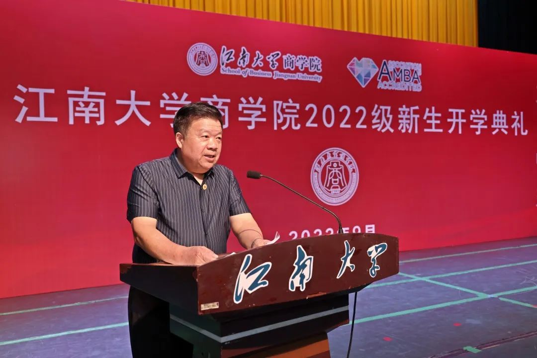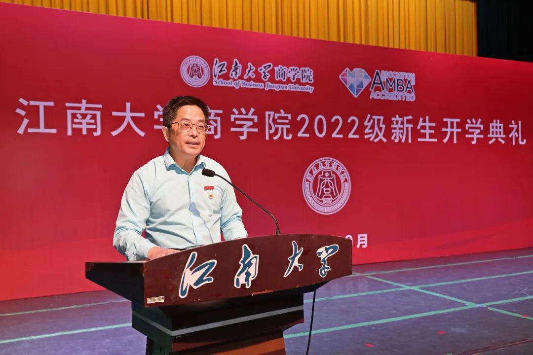 在雄伟而庄严的国歌声中,典礼正式拉开序幕。商学院院长浦徐进对新生的到来表示热烈欢迎。他介绍了商学院办学三十七年以来的历史沿革及学科建设发展情况,强调了学院“厚植江南工商文化、立足中国管理实践、贡献商科学术新知,培养具有全球视野的未来领导者”的办学使命,同时鼓励新一届同学牢记并传承“笃学尚行、止于至善”的校训品格和“笃学明道、经业济世”的院训精神,赋予其新的时代内涵。