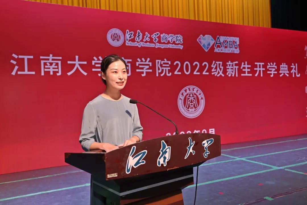 商学院金融系副教授陈嘉琪作为教师代表发言。她以苏轼《稼说送张琥》中的“博观而约取”和《荀子·儒效》的“万变不离其宗”为引,向同学们提出了明自我、知得失、重创新、懂坚持的殷切希望。陈嘉琪表示,在教学上将始终以饱满的热情传道、授业、解惑,在科研上将竭尽全力引领创新,以良师益友的角色陪伴大家的校园生活。