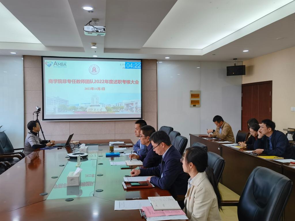 根据《商学院教职工年度考核办法》《商学院非专任教师绩效考核及奖励办法》要求,11月2日下午,商学院在304会议室举行非专任教师团队2022年度述职考核会。商学院党政领导、系主任、党支部书记、专项工作助理和教师代表等近20人参加会议。考核会由院长浦徐进主持。