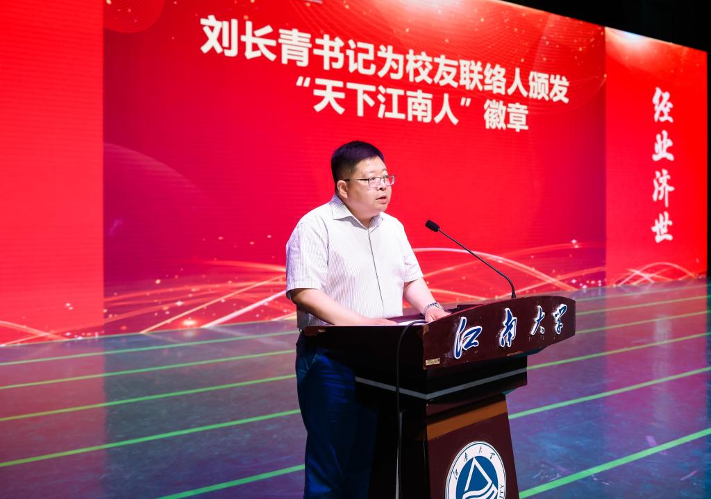 商学院党委书记刘长青带领毕业生佩戴“天下江南人徽章”并讲话