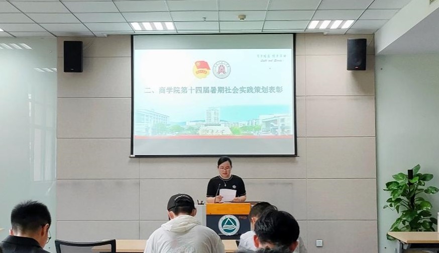 王璁宣读商学院第十四届暑期社会实践策划大赛表彰决定。学院于2023年5月举办了第十四届暑期社会实践策划大赛,共吸引26支团队参与,经专业评审组审核讨论,评选出17支团队进入线下复赛。商学院国际经济与贸易系主任戴越、金融系副教授赵海蕾、分团委书记王璁、分团委副书记曹梦然、辅导员陈梦组成专业评委组参与此次活动。最终确定10支优秀团队为院级优秀团队获评表彰。