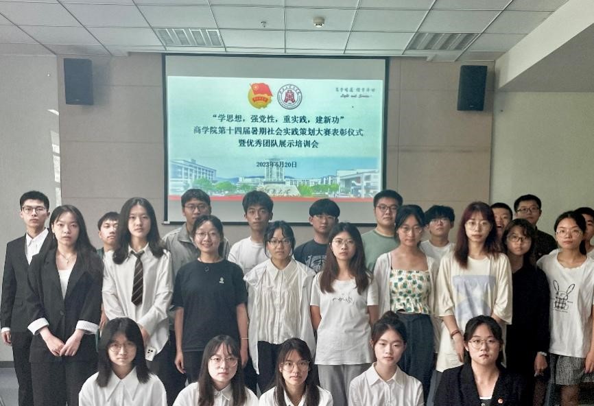 为培养高校大学生立足专业所学、锤炼实践本领,激发商院学子积极参与“三下乡”暑期社会实践活动,6月20日下午,商学院举办了“学思想,强党性,重实践,建新功”商学院第十四届暑期社会实践策划大赛表彰仪式暨优秀团队展示培训会,分团委书记王璁、“志青春·与国同行实践团”骨干成员、实践策划参赛团队代表参与活动。