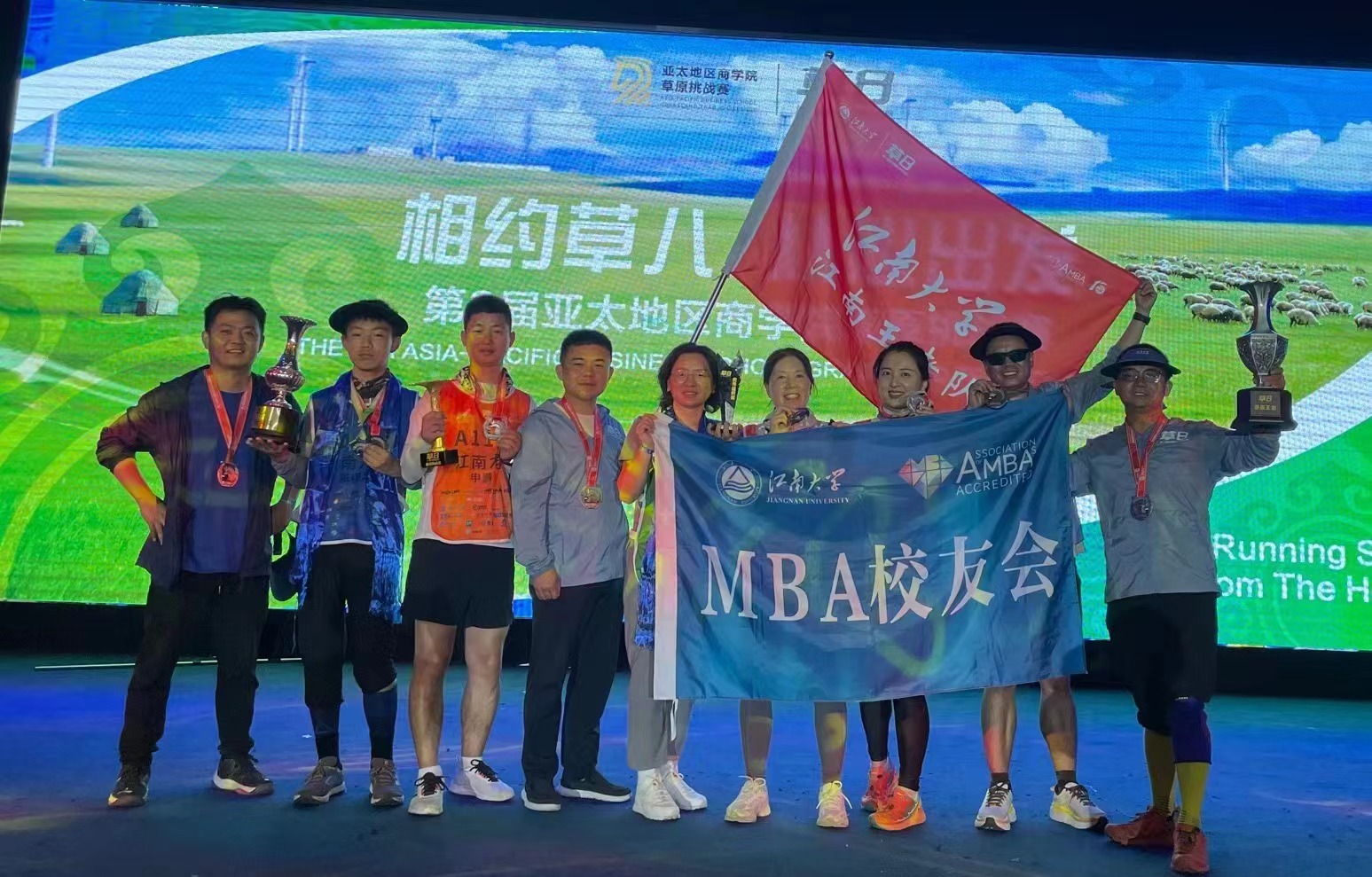 首次出征亚草赛的江南大学MBA“江南王者”代表队由MBA教育中心办公室主任唐杰担任指导老师,MBA校友会执行会长王华科担任领队,2010级-2022级的10位同学校友组成。全体队员发扬团队精神,不惧炎热、互帮互助、奋力拼搏,最终全体成功完赛,斩获亚草赛最高荣誉“草原王者奖”,同时斩获“最佳组织奖”“最佳风采奖”“草原新秀奖”共计4大奖项。