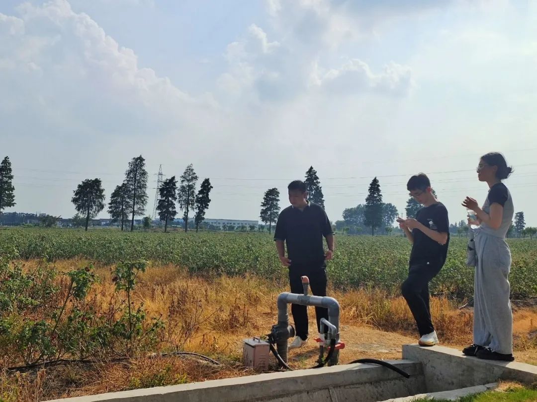 调研期间,实践团成员与美栖村第一产业负责人兼技术员的蒋永波一同走进美栖村千亩食用玫瑰花田,对农业物联网设备使用情况进行深入调研,考察田间小型气象站、土壤温湿度传感器、电磁阀等物联设备的运行情况。成员们了解到,美栖村千亩食用玫瑰花田项目将现代物联网技术与传统农业生产相结合,不仅能实现对环境数据与作物长势的自动监测,还能根据监测情况自动控制田间的水肥一体化灌溉系统,达到了省工、省肥、省水、省心、省电、省地、增产的效果。据测算,物联网技术与水肥一体化灌溉技术的使用能使每亩用工量减少80%的同时反而增产20%,同时还能够节肥50%。