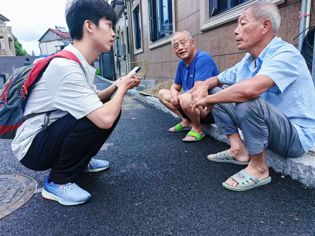 为倾听原乡人最真实的声音,实践团队还前往余村村民聚居处开展访谈交流。访谈过程中,成员了解到政府建立了补贴分红机制,在村集体经济总收入逐年增长的同时保障人均可支配收入不断提高,让村民切实享受绿色发展的红利。同时随着生态旅游的发展,余村的自然环境、基础设施建设不断改善,余村村民憧憬的便利生活、幸福美好逐渐成为现实日常。并且,青年创业项目得到政府的大力扶持,这使得余村的产业结构、业态水平都得到很大程度的改善与提高。