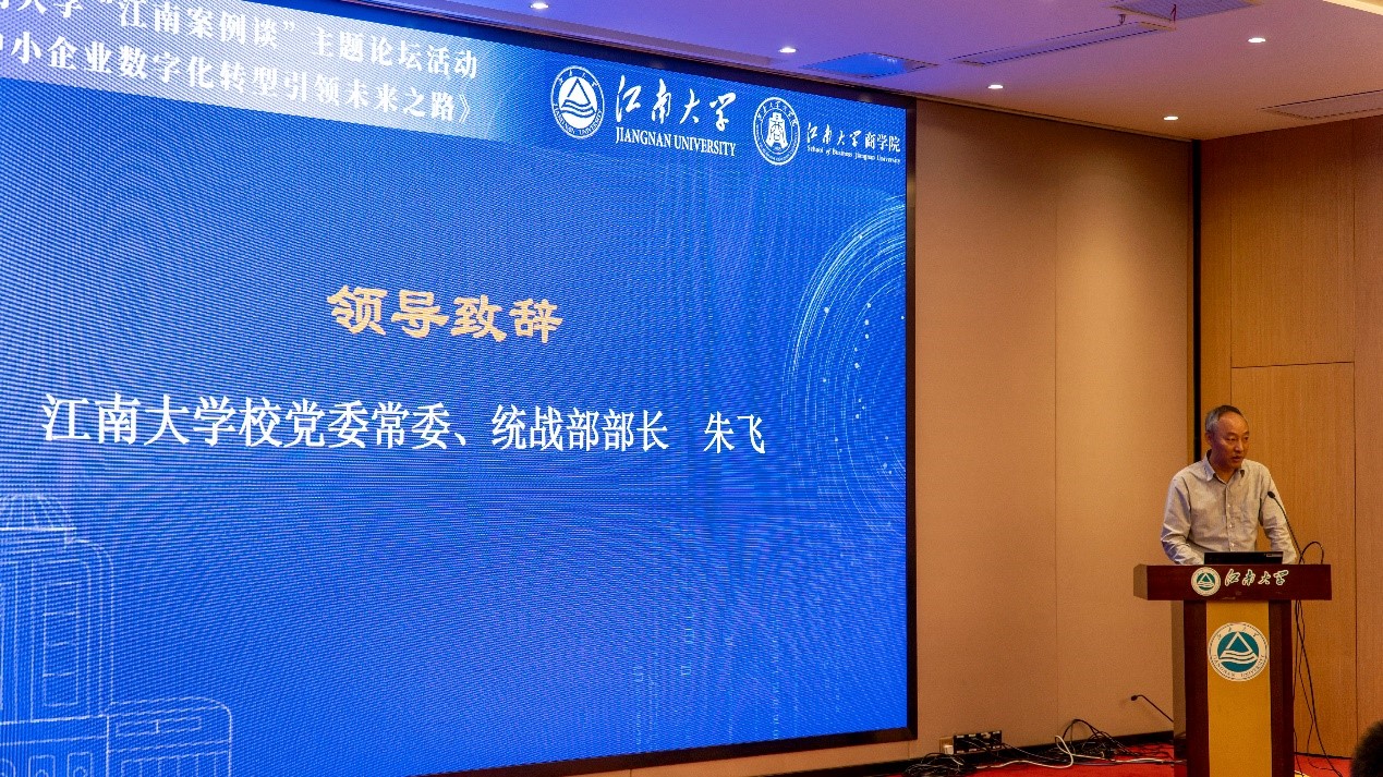 朱飞首先为活动致辞。朱飞指出,“江南案例谈”是江南大学商学院案例中心自去年底全新策划推出的系列活动,活动聚焦行业发展、企业实践、校企合作、产教融合等方面,坚持以事实、问题、对策为导向,力求形成思想交融、观点研讨、认识提升、实践运用。希望通过本期《中小企业数字化转型引领未来之路》主题活动,各位专家嘉宾和师生校友更加深刻领会习近平总书记“不断做强做优做大数字经济”所蕴含的理论特质和品格,抓住数字中国的“根”和“魂”。