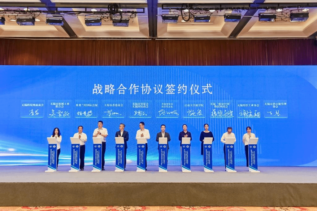 近日,江南大学商学院EDP中心主任兼社会资源办公室主任施宏和MBA教育中心招生办主任孙君敏出席了中国国际商会无锡商会第七次会员代表大会暨RCEP国家贸易投资合作交流会,江苏省贸促会(江苏省国际商会)会长尹建庆、无锡市人民政府副秘书长李亚萍等参会并致辞。施宏代表江南大学商学院与中国国际商会无锡商会签署了战略合作协议。