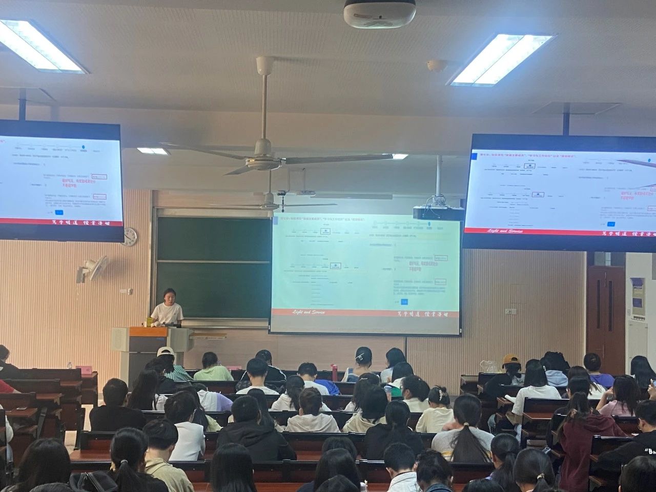 紧接着,康欣向大家分享考研系统填报、应试技巧等相关备考经验。康欣考研初试总分413分,位列专业第一。她结合自身备考经验从系统填报流程、考研课程复习规划、考研心态调整等方面进行了详细的分享。期间,同学们积极互动,主动向学姐请教考研相关事项,康欣逐一耐心解答同学们的疑惑,分享会气氛热烈。最后,康欣用自己的座右铭“往事暗沉不可追,来日之路光明灿烂!”鼓励大家不到最后一刻不能轻言放弃,考研同时是一场心理战,要调整好心态,沉着应对。