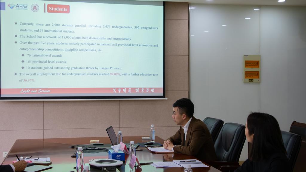 会上,浦徐进首先对Jeffrey Stangl博士的到访表示诚挚的欢迎。他表示,梅西大学作为江南大学在国际教育领域的合作伙伴,双方保持着良好的合作关系。如果梅西大学商学院与江南大学商学院能够在日后开启新的合作,将会是双方在国际教育领域的一次新的扩展。随后,孟繁博向Jeffrey Stangl详细介绍了商学院目前的发展情况,包括教学科研、人才培养、国际交流等方面的成就。Jeffrey Stangl博士对江南大学的热情接待表示感谢。他表示,江南大学作为梅西大学重要的合作伙伴,他非常期待与江南大学在新的领域开展合作。在随后的讨论环节中,双方就合作领域与意向进行了深入的探讨,并达成共识,认为应充分准备以确保未来合作的顺利进行。