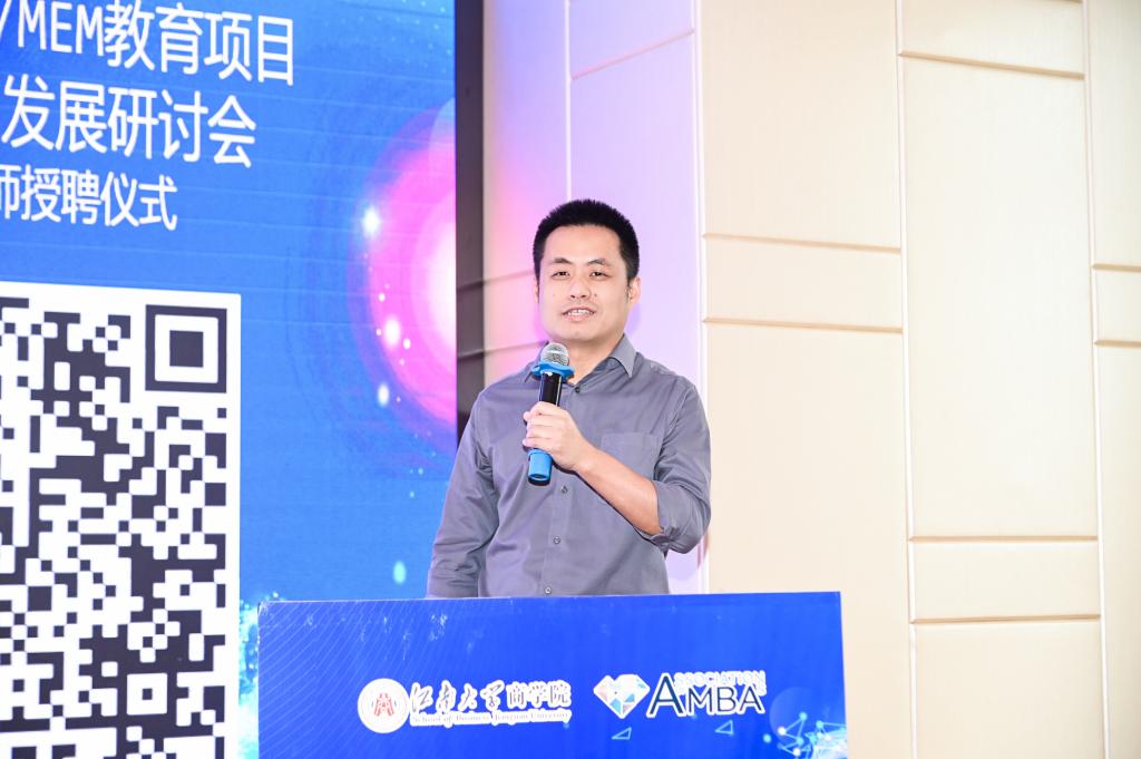 阿斯利康制药有限公司工程及项目部负责人裴志强代表2023级企业导师发言。他表示,深化校企合作、联合培养人才,既是发展新质生产力的迫切需求,也是高校和企业的共同担当,他将同所有的校内外导师一起,为优秀工商管理人才的培养做出更大贡献。