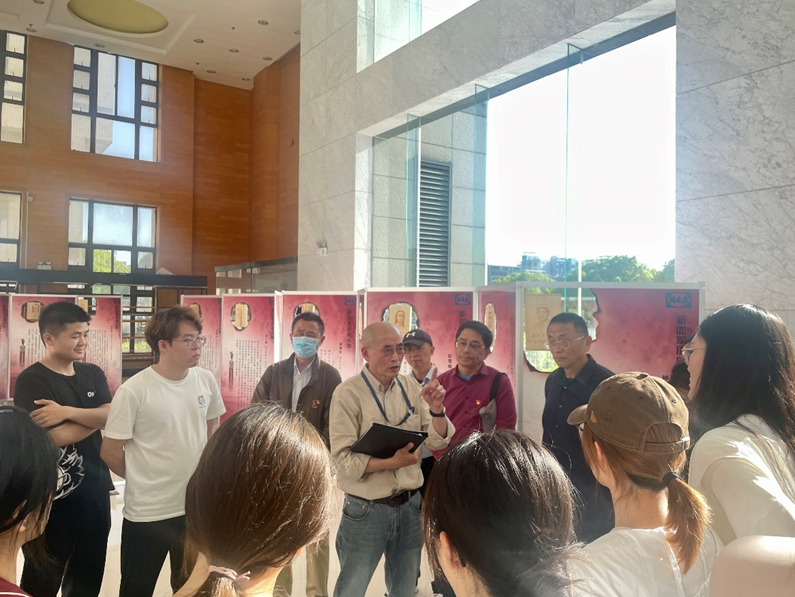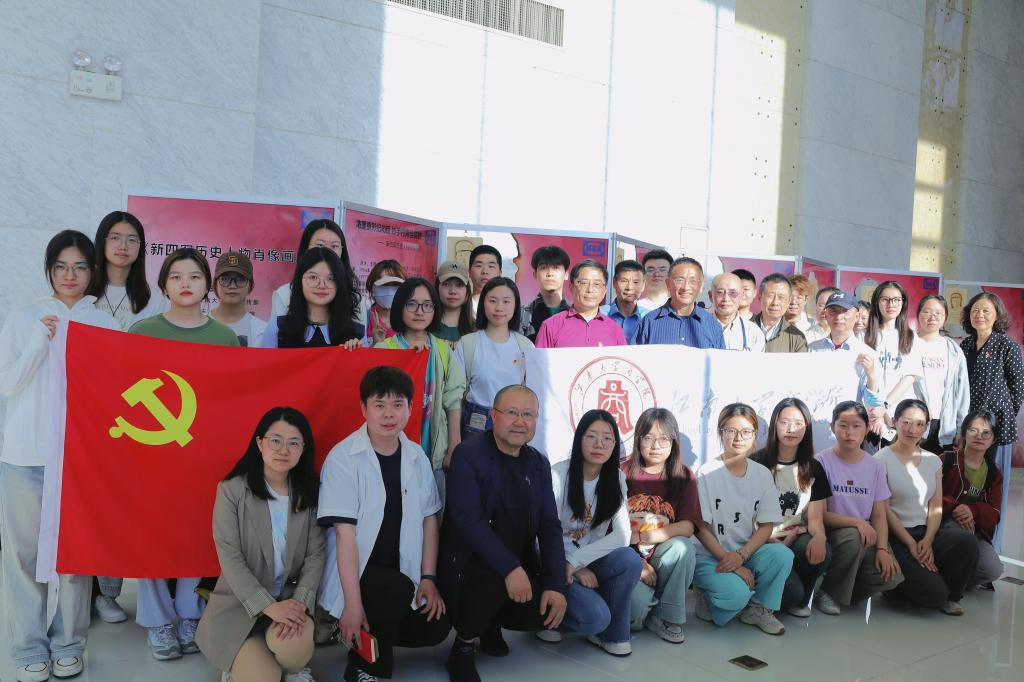 5月15日,江南大学离退休处第一党支部教师党员,商学院孙冶方特称团支部、瞿秋白特称团支部、雷锋特称团支部等学生代表共40人,前往江南大学图书馆一楼新四军历史人物肖像画展处,共同开展“红色记忆,历史共铭”——商学院“老少携手,党团共建”主题活动。此次活动旨在缅怀历史、传承铁军精神,向师生们展示新四军的光辉历程,并通过艺术的形式让新四军的精神焕发新的生命力。活动有幸邀请到新四军历史人物肖像画作者汤沐现场讲解。