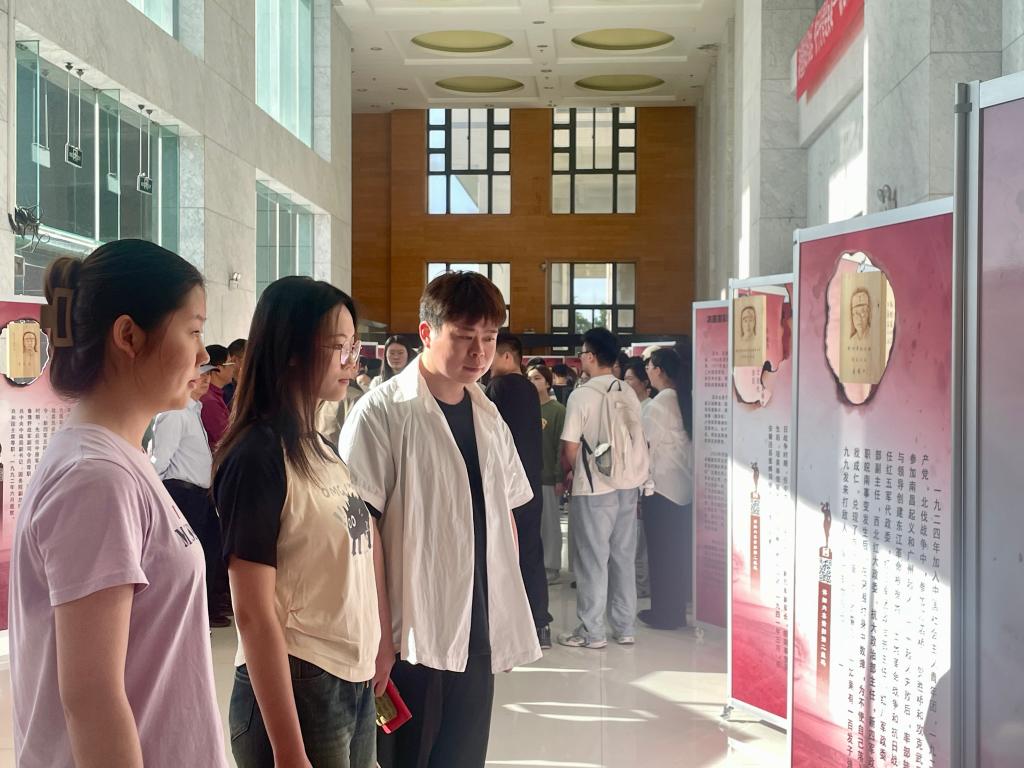 在自由观展交流环节中,师生现场积极分享心得感受。金融2102班班长郑蔓娣同学分享道:“通过汤沐先生的解读,我更加深刻地体会到艺术的魅力和力量。人物肖像烙画展现了新四军战士的形象和精神,让我对历史人物有了更加生动的认识。作为当代青年,参加这样的活动让我感受到了传承和发扬铁军精神的使命和责任。新四军的精神不仅是历史的记忆,更是我们继往开来的力量源泉。”