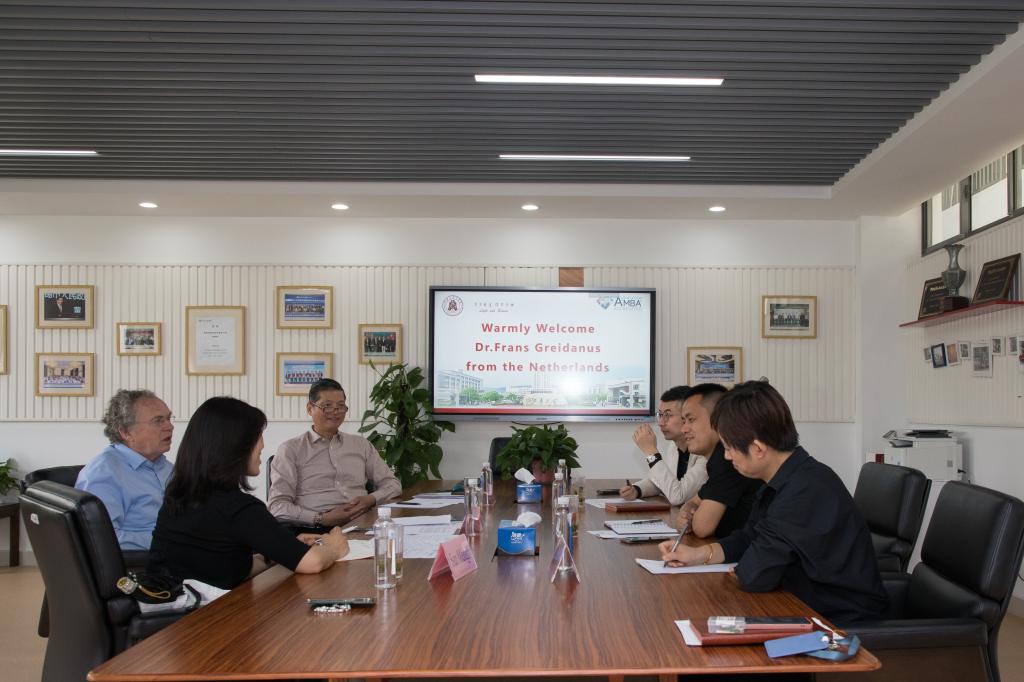 上午,Greidanus博士与荷兰北布拉邦省驻江苏代表王旭先生一同访问了江南大学商学院,并与商学院院长浦徐进、院长助理孟繁博等进行了深入交流。浦徐进对Greidanus博士的到来表示了热烈欢迎,并感谢他在推动江南大学与荷兰高校交流合作方面所做的努力。Greidanus博士也对江南大学的邀请表示感谢,并强调江南大学与荷兰蒂尔堡大学等高校之间持续的良好沟通为今后的合作奠定了坚实的基础。双方就合作办学、建立品牌合作论坛以及科研合作等多个方面进行了详细的探讨,并取得了积极共识。