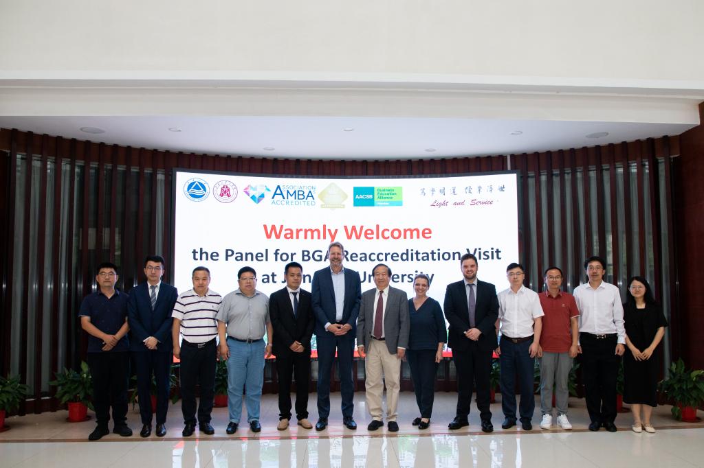 7月1-2日,以AMBA&BGA国际认证咨询委员会主席Steef van de Velde教授为小组主席,匈牙利科维努斯大学EMBA学术主任Andrea Toarniczky教授、浙江大学资深教授王重鸣教授、AMBA&BGA高级认证经理Joseph Pilkington为委员的认证专家组对商学院进行了为期两天的现场认证评估工作。中国工程院院士、江南大学校长陈卫,江南大学党委常委、副校长堵国成,国际交流处、研究生院、教务处以及商学院党政领导,学院组织管理系、市场营销系、MBA/MEM教育中心、认证办、学工办、教务办等老师全程参与了此次访视。