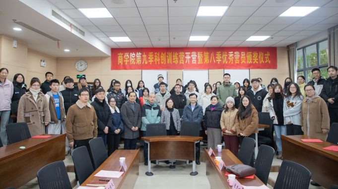 近日,商学院在116东方厅举行了第九季科创训练营开营暨第八季优秀营员颁奖仪式。教务处副处长张慧琪,商学院副院长刘勇,商学院特聘导师、青年教师及第八季优秀营员、第九季营员代表参加此次活动。