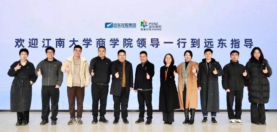 近日,江南大学商学院党委书记刘长青、党委副书记兼副院长孙小芳等一行赴远东控股集团参观交流。远东控股集团创始人、董事局主席蒋锡培,远东股份资深合伙人、首席行政人力资源官、远东大学执行校长邵亮,远东股份高级合伙人、人力资源服务中心总监、远东大学运营管理中心总监张妍妍等热情接待并开展座谈。