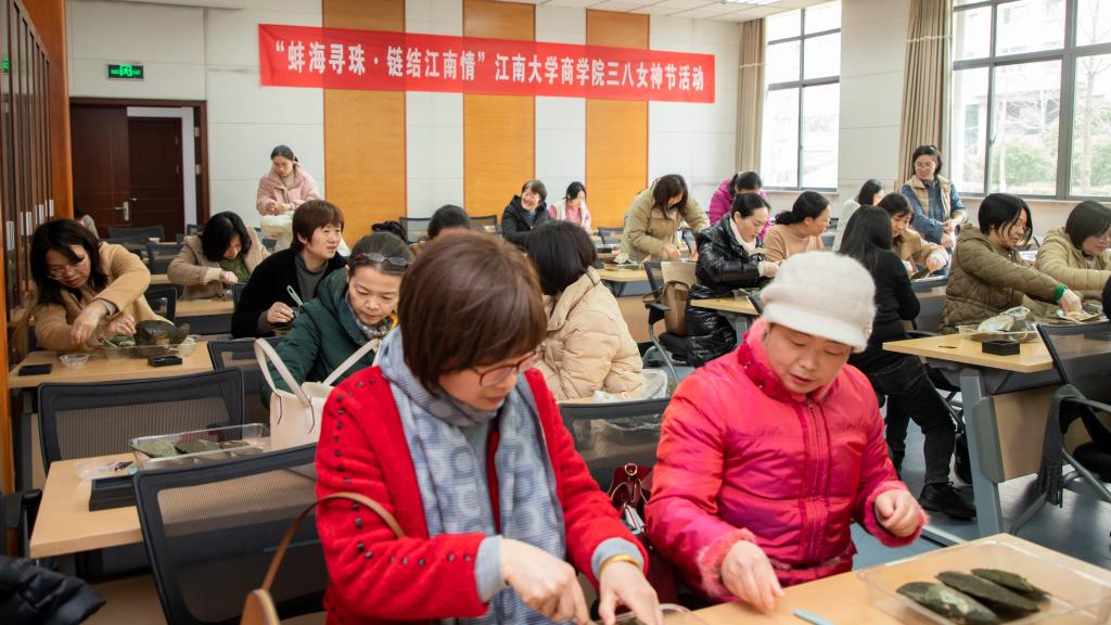 春风裁云袖,珠光缀芳华。3月5日,商学院分工会在123教室,举办“蚌海寻珠・链结江南情”三八妇女节特别活动。本次活动为70位女教师带来了一场别开生面的珍珠文化体验之旅,让大家在忙碌的教学工作之余,感受“智慧与美丽并存”的独特魅力。