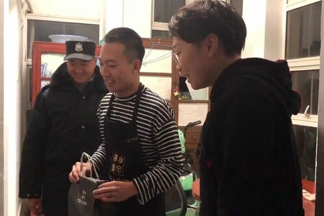 每天我们在学校规定的关门时间回学校时,都能看到值班叔叔伯伯们很敬业地守在大门口。我们之所以有这样安静、安全的上课、学习、创业、休息环境,离不开学校这些默默为我们付出的人们。这两天突然降温,我们就想以自己亲手做的茶饮来感谢值班的伯伯们。想让他们知道,他们的默默辛苦,我们学生们是看得见的。”