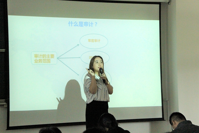 本次讲座特邀嘉宾老师为ACCA特许公认会计师公会会员、全球职业规划师Candice。老师先从自身职业角度出发,以四大会计师事务所为依托,深入浅出地介绍了财经行业的现状及目前财经行业的发展趋势,令同学们充满向往与憧憬。接着老师向大家详细介绍了有关名企招聘人才的需求现状,分析了部分名企招聘人才的标准,让大家提早做好准备。随后老师为同学们讲述了实习的重要性以及如何找到一份优质的实习。最后,老师向大家分析了当前紧张的就业与考研形势,指导同学们尽早做好一份简历并告知同学们,在大学生活中,如何去丰富自己的简历,才能在毕业时做好一切准备。