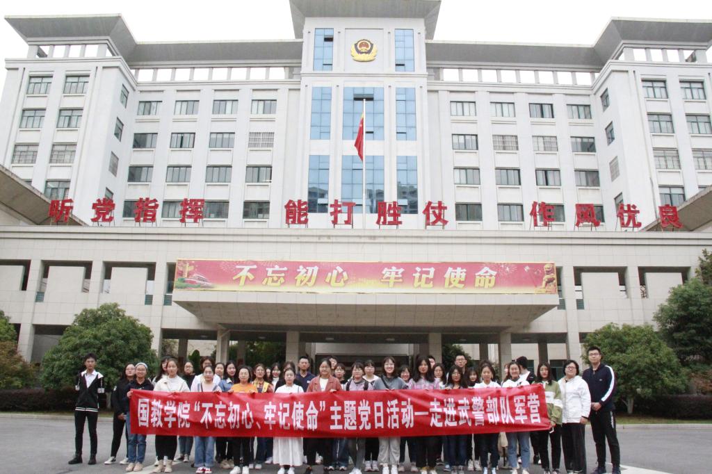 为陶冶青年学生爱国情操,增强国防意识,学习和发扬部队官兵“听党指挥、能打胜仗、作风优良”的战斗精神,2019年10月26日下午北美学院分团委副书记任振宇,年级辅导员王汉华带领学院学生党员、菁英训练营成员一同走进武警部队无锡支队开展“不忘初心、牢记使命”主题党日活动。