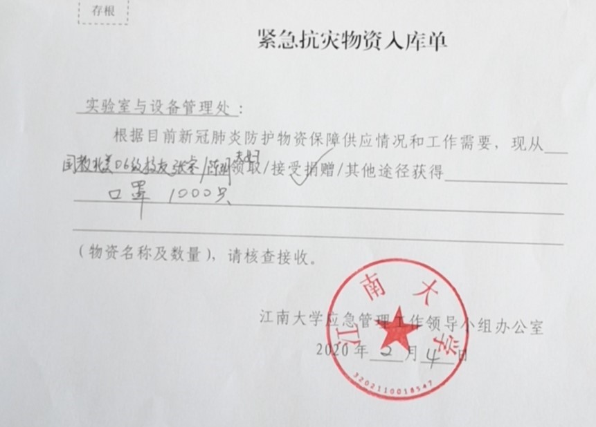 2月4日,在全校师生众志成城,抗击新冠病毒的非常时刻,北美学院校友捐赠医用口罩1000只,为母校疫情防控积极贡献力量。