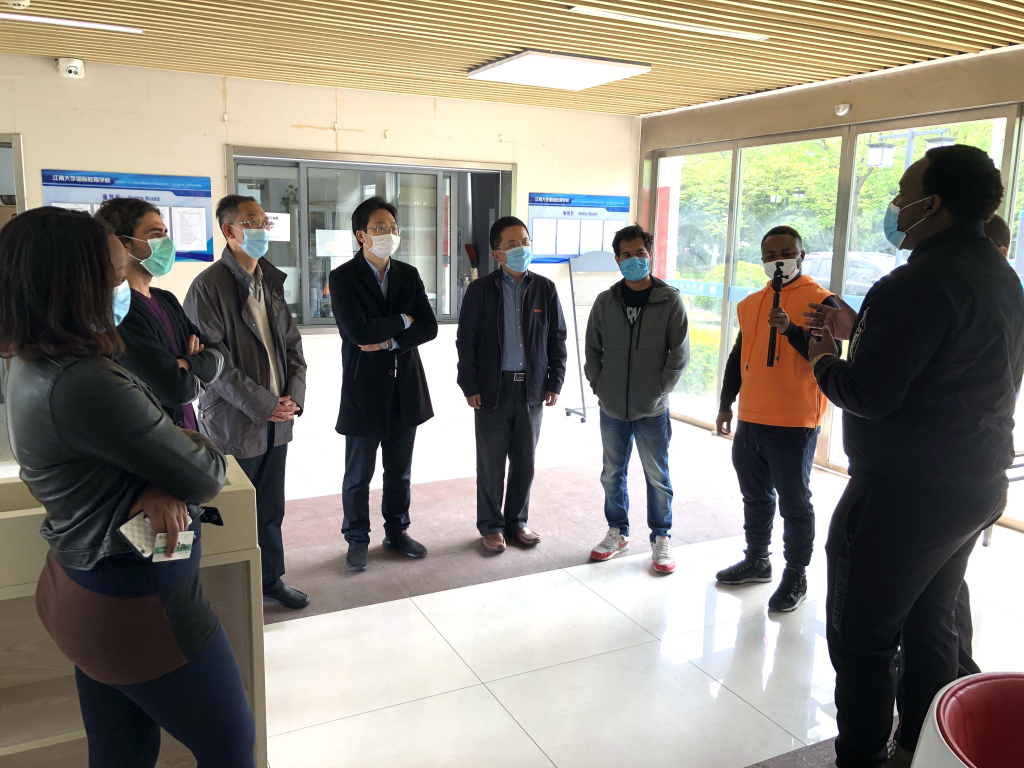 4月23日下午,国际教育学院与北美学院党委书记陈琳,院长龚晓斌,党委副书记、副院长荆燕,副院长李雷一行前往学生公寓,走访慰问在校中外学子。
