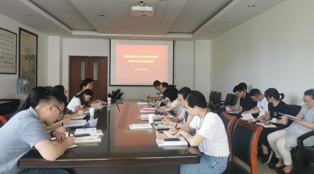 为庆祝建党99周年,不忘初心、牢记使命,进一步发挥支部战斗堡垒作用和党员先锋模范作用,6月30日下午,国际教育学院与北美学院党委在学院306会议室举行迎“七一”专题党课,学院党委书记陈琳以“携手战'疫’制度聚力”为主题授课,学院党支部书记、委员参加。