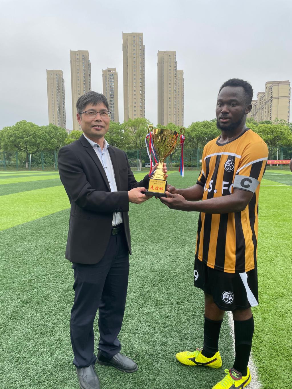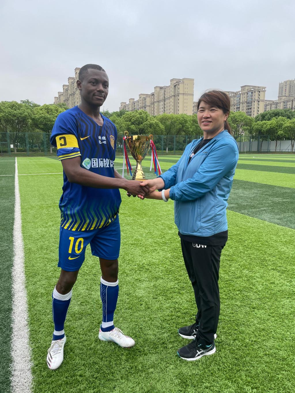 双方上下半时各中一元,终场比分握手言和。尽管三周前客场比试时我校国际男儿曾以3:2险胜,但综合两回合表现,赛后仍由双方队长共举友谊杯,王勇与我校体育部副主任戴平为其颁奖。