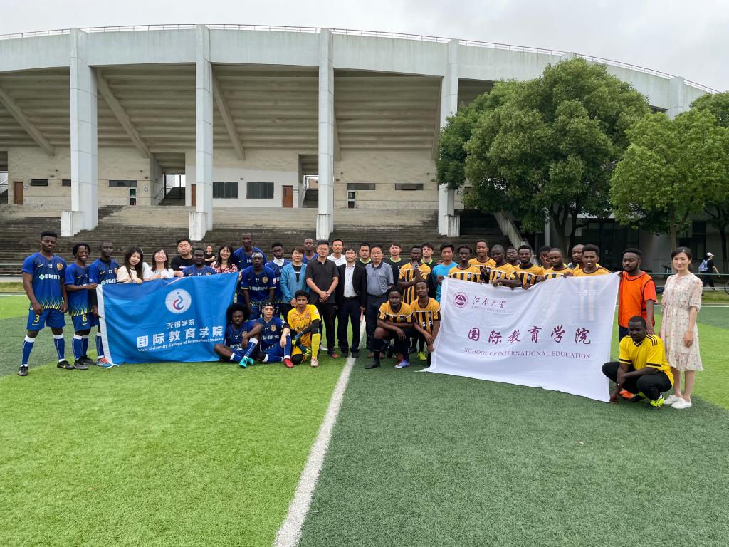 6月2日下午,江南大学国际学生足球队在美丽校园主场迎来了做客的南京信息工程大学滨江学院(无锡学院)国际学生足球队。