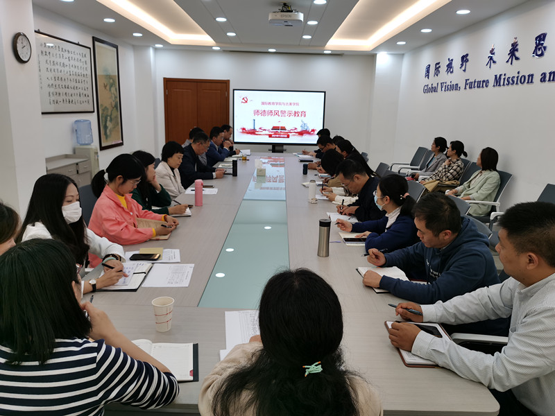 “百年大计,教育为本;教师大计,师德为本。”为贯彻落实《新时代高校教师职业行为十项准则》,让广大教职工牢记自己的初心使命,国教与北美学院于11月3日下午召开全院教职工大会,专题开展师德师风警示教育。会议由党委副书记、副院长荆燕主持。