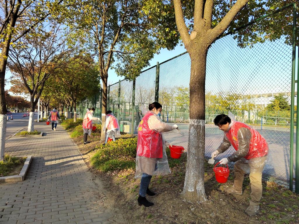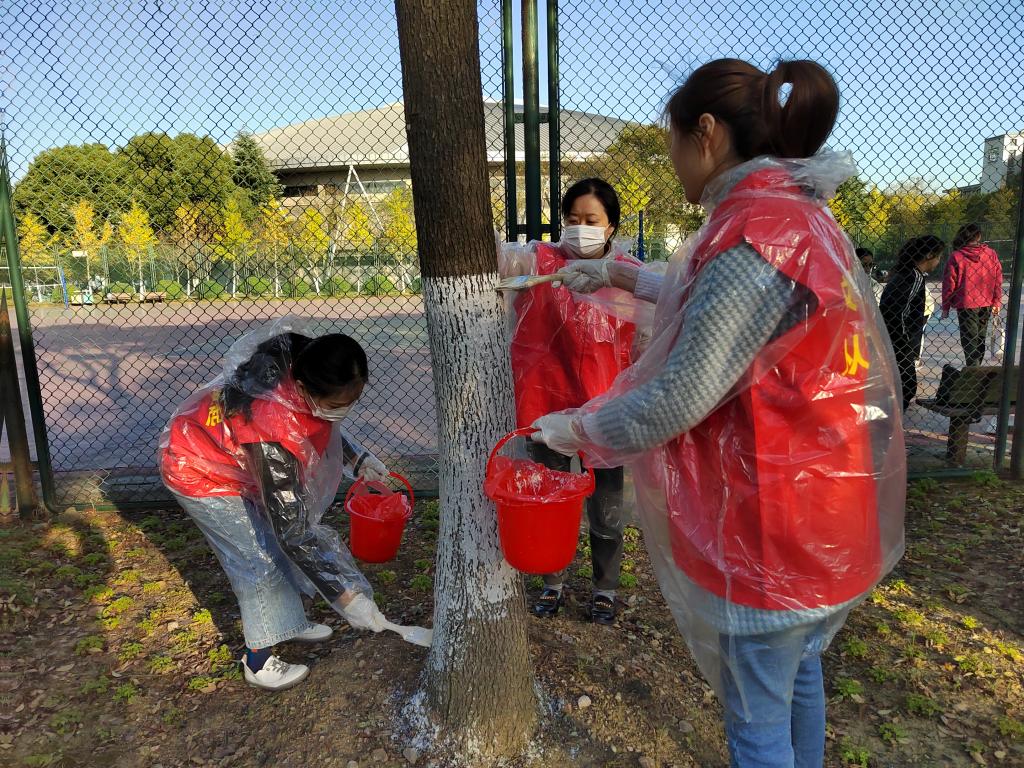 活动中,党员们在专业人员指导下,将现场调配的涂白石灰均匀涂到树干上,以达到防病虫害、保暖过冬的效果。整个活动热火朝天,党员们充分发挥不怕脏不怕累、团结协作的劳动精神,将学校中央大道的树木整齐地穿上了“新衣”。