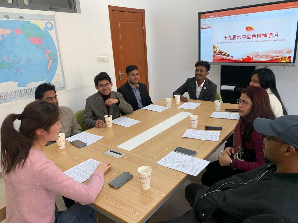11月23日下午,我校部分国际学生与辅导员齐聚一堂,热议中国共产党十九届六中全会精神。同学们为中国共产党的百年奋斗历程及取得的伟大发展成就所震撼,为中国共产党全心全意为人民服务的初心使命所感动。他们围绕各自的来华留学经历,讲述起不一样的中国故事。