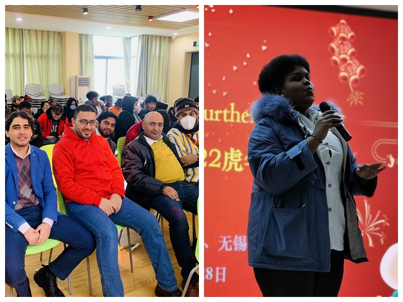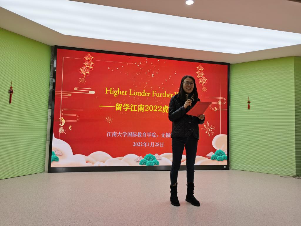 近日,全体在校国际学子济济一堂,以一场别开生面的“留学江南2022虎年迎春会”庆祝中国春节即将到来。国际教育学院院长龚晓斌、副院长李雷,无锡恒诚硅业副董事长陈辰,商学院副教授施宏等应邀出席活动。国际学生联合会主席、纺织科学与工程学院加纳籍博士研究生阿尔法担任主持。