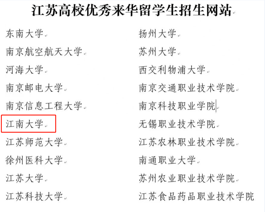 江苏高校优秀来华留学生招生网站名单