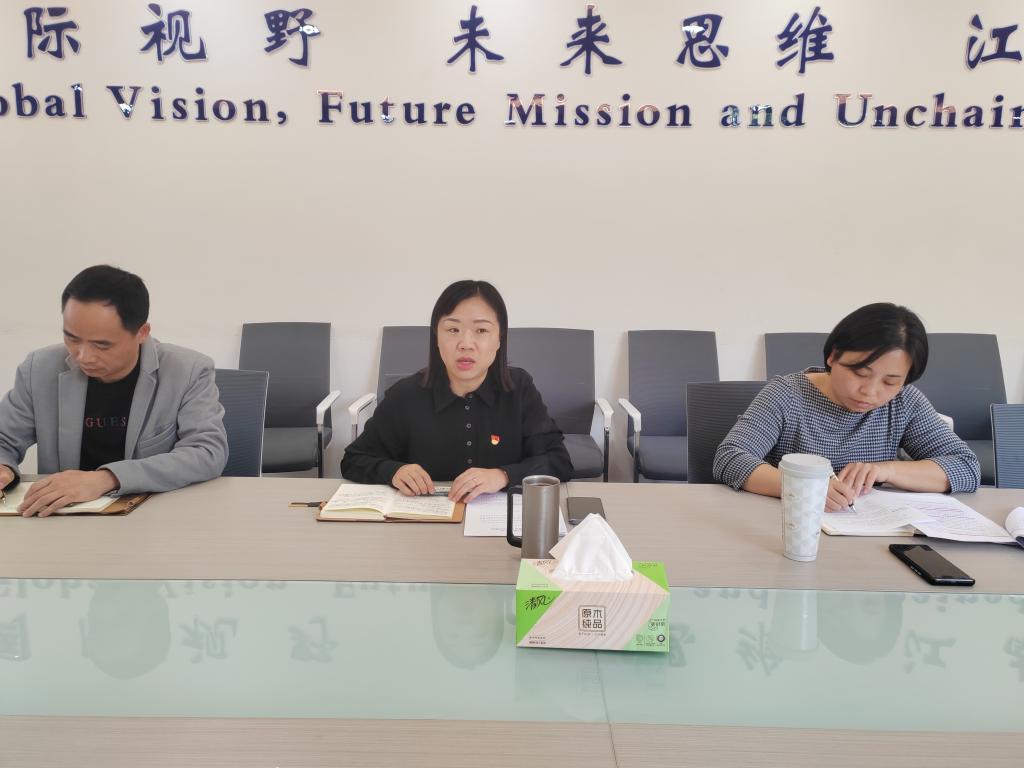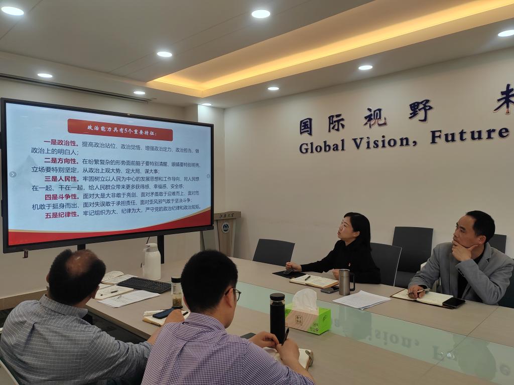 王晖传达并解读了《江南大学2023年教师思想政治和师德师风建设工作要点》和师德师风建设月活动的通知,对近期重点工作做了提示和布置,同时以《加强政治历练 提高政治能力》为主题进行理论学习分享。她从世界维度、历史维度、现实维度分析了加强政治能力的重要意义,详细解读阐述要深刻理解习近平总书记关于政治能力建设的重要观点,以及如何提升自身政治能力水平,要求全体基层党支部委员们在加强理论修养、坚定理想信念、牢记初心使命、严肃政治生活、主动担当作为中锤炼政治能力。