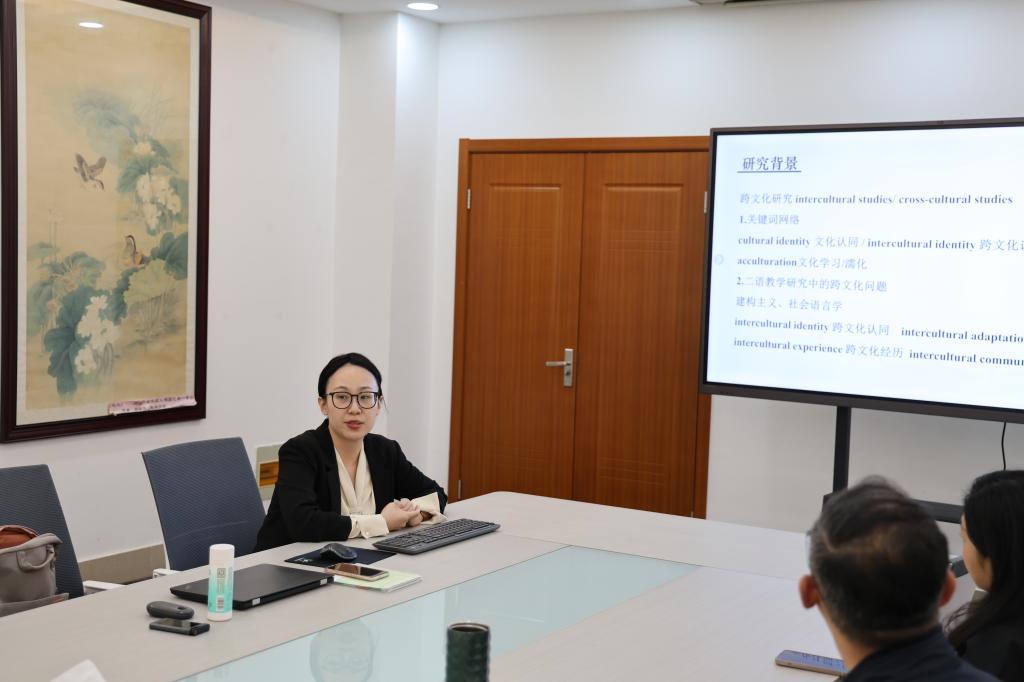 活动伊始,肖清以《华裔留学生跨文化认同研究》为题汇报了近期的研究进展。报告分选题来源、文献综述、理论框架、研究方法和数据分析五个部分,探讨了华裔留学生在日常学习、生活中遇到的跨文化难题及适应策略,对今后的来华留学生跨文化研究做了展望。