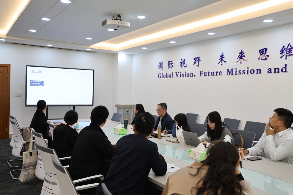 4月26日下午,江南大学国际教育学院系列教研活动“2:11国际教育·视角”第二讲在国际教育学院A306室成功举行。国际教育学院院长龚晓斌,外国语学院唐沁老师,国际教育学院学工部张瑶瑶、北美学院陆晓斐老师,国际中文教育中心全体教师参会。活动由国际中文教育中心教师肖清主持并主讲。