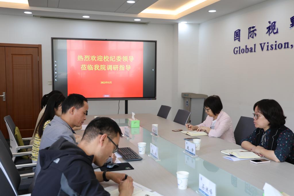 5月23日上午,校纪委副书记、纪委办公室主任、监察处处长魏静,校纪委案件监督管理室主任魏福琴一行来国教与北美学院开展学校纪检监察工作专题调研,学院兼职纪检委员、副院长周伟,以及师生党支部纪检委员何倩楠、梁洪峰和朱昊彧参加了此次调研活动。