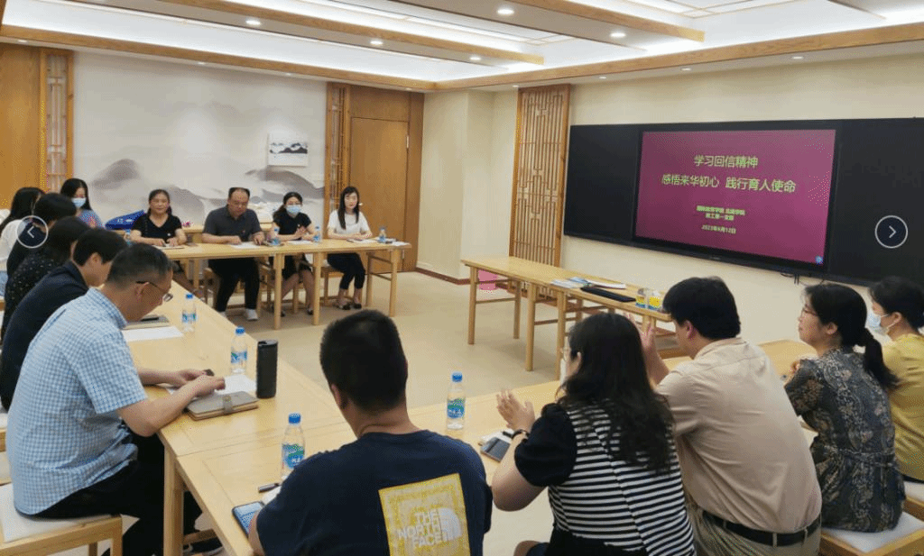 为进一步扎实推进学习习近平新时代中国特色社会主义思想,贯彻中共中央政治局第五次集中学习重要讲话精神,6月12日下午,国际教育学院、北美学院教工一支部开展专题组织生活会。校党委宣传部部长李佳敏到会巡听督学,学院党总支书记王晖、副书记王胤列席会议,会议由支部书记童文俊主持。