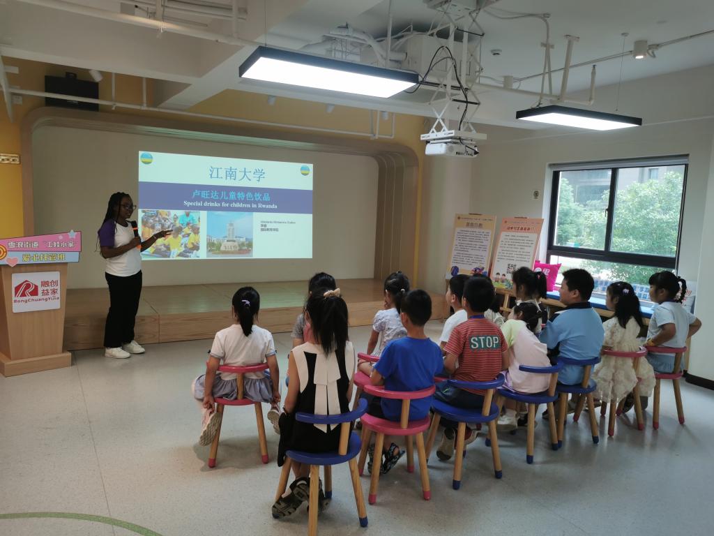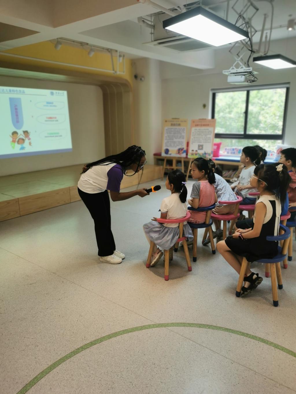 李娜说:“我来自卢旺达,很高兴向大家介绍卢旺达的特色文化,希望更好地促进中外文化交流、互鉴互赏。同时我也是食品专业的博士研究生,我希望通过和小朋友们分享食物营养与食品安全卫生知识让科普走进社区,走进千家万户。”苏佳诚说:“我参加过很多志愿服务活动,也很喜欢和小朋友们一起交流,希望帮助他们打开认识世界的一扇窗。”