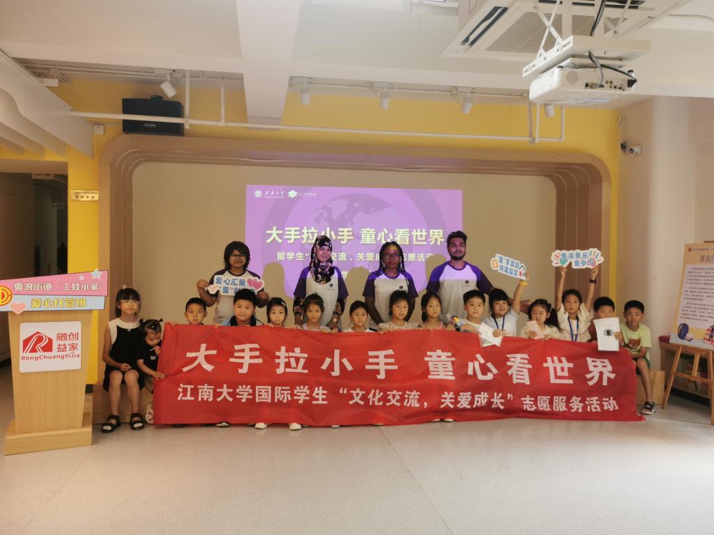 “I like the English teachers. They teach very well.”7月27日,无锡融创城社区的小朋友们参加完江南大学国际学生志愿者“大手拉小手,童心看世界”活动后,争相为洋老师竖起大拇指,这让过来当“孩子王”的国际学生志愿者们开心不已。