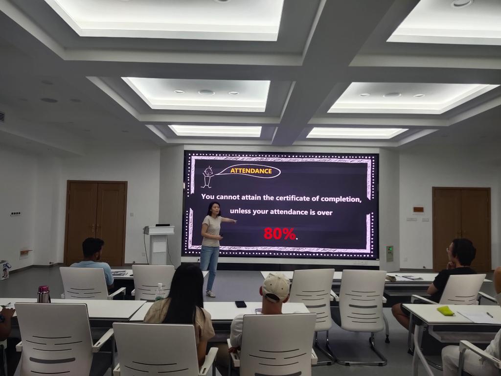 此外,国际中文教育中心主任胡袁园针对课程安排、上课考勤、汉语之星评选等事宜向同学进行了讲解。国际学生辅导员张瑶瑶带领学生解读了《江南大学国际教育学院汉语进修生管理规定(试行)》,提醒学生管理工作中的底线红线,遵守校纪校规,认真学习汉语和中国文化,顺利完成学业。