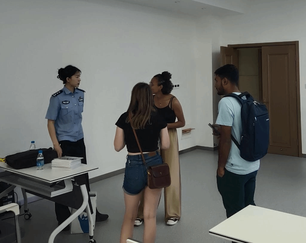 张莉就外国人来华签证、在华外国人管理条例、反电信诈骗提醒等开展宣传教育,提醒大家知法懂法、遵纪守法。随后,张莉通过具体案例及自身多年工作经验,与汉语生进行了现场交流,并向同学们赠送了出入境服务专刊等宣讲材料。