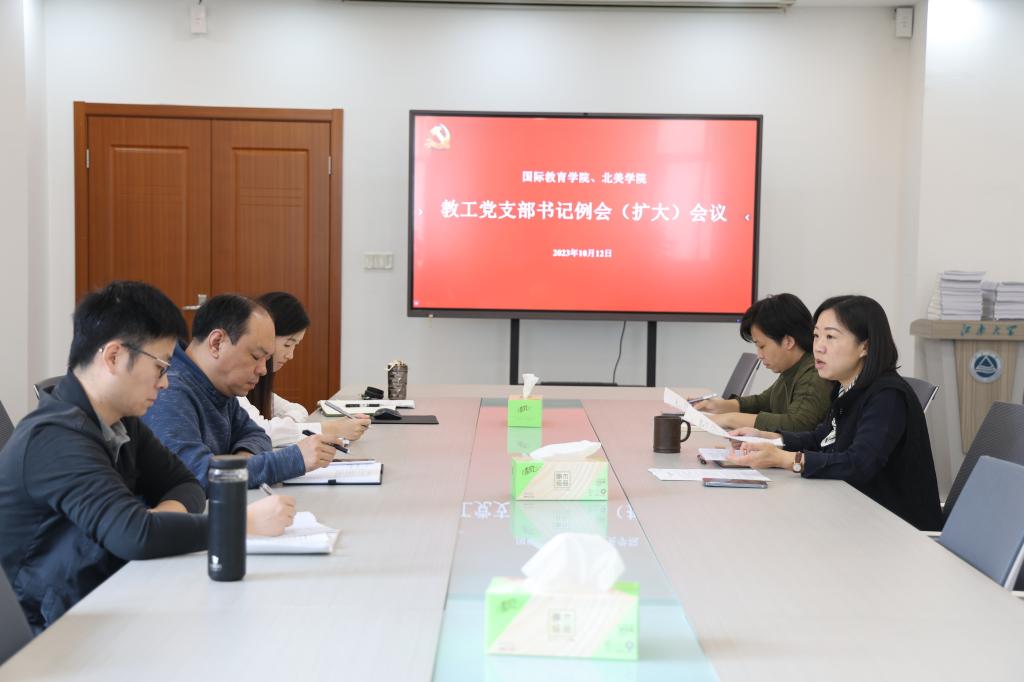 10月12日上午,国际教育学院、北美学院教工党支部书记例会(扩大)会议在学院A306召开。学院党总支书记王晖、党总支副书记王胤、教工党支部书记、党支部委员代表、专职组织员参加会议,会议由党总支书记王晖主持。