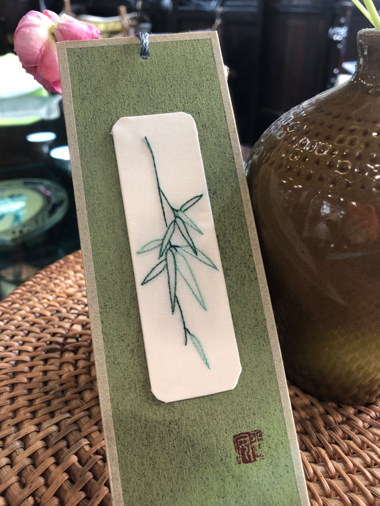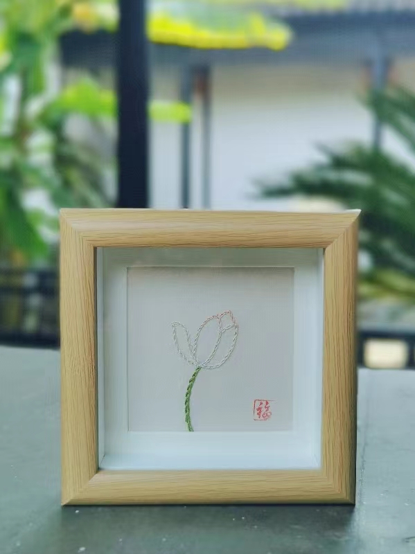 在薛福成故居古色古香的教室中,胡晔新和邵敏两位市级非遗传承人向留学生们简要介绍了无锡精微绣2000多年的发展历史,手把手教授他们穿针、打结、起针、收针的方法以及锁针、滚针等基本针法技巧。留学生们在第一次课上学会了用锁针针法绣制荷花;第二次课上他们又运用新学的滚针针法绣制了双面锡绣书签《竹报平安》。课堂内气氛温馨,留学生们边绣边跟两位非遗传承人交流各自国家刺绣文化的风格与特点。