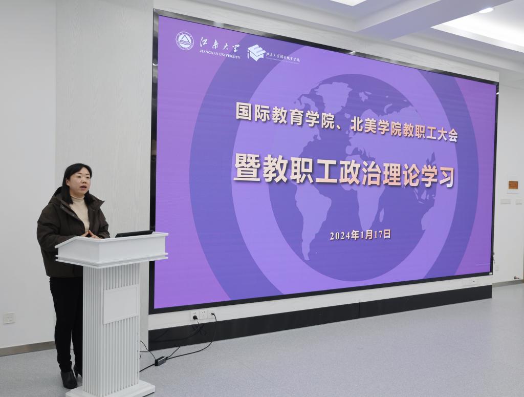 国际教育学院、北美学院召开教职工大会暨教职工政治理论学习