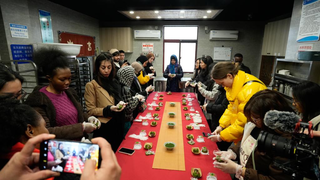 活动期间,国际学生还在阳山如意村体验了青团制作,在老师的指导下饶有兴致地了解青团外皮和内陷的制作工艺,充分感受到了中华传统美食的独特魅力。
