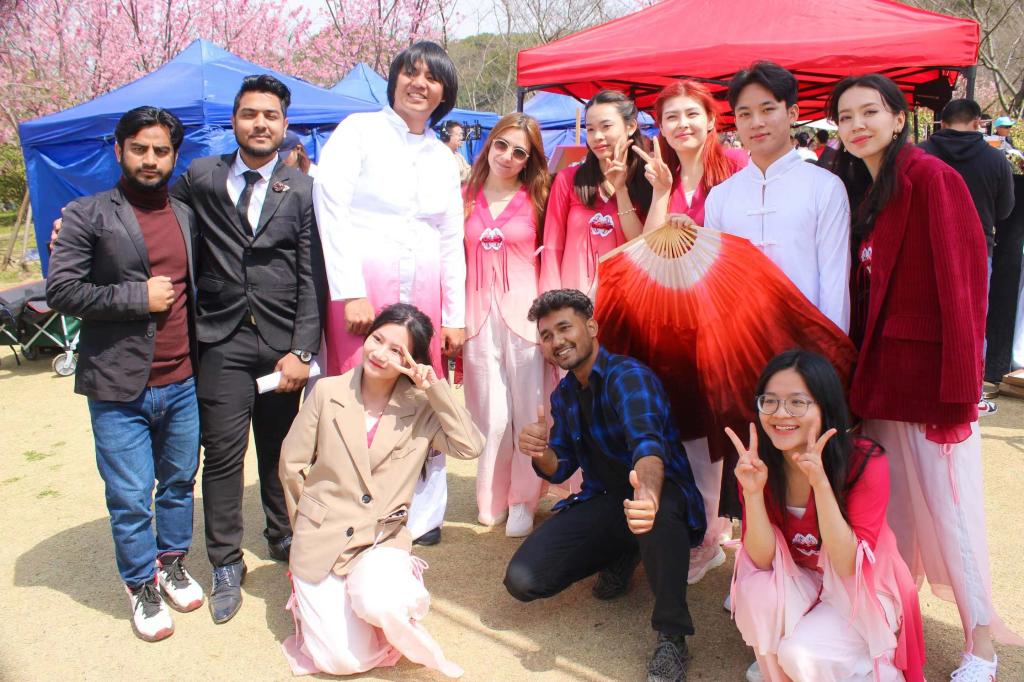 在烂漫的樱花谷,国际学生们欣赏各国艺术团体的精彩表演,感受不同国别的多元文化,体验二胡、京剧等中国传统文化的独特魅力。活动现场,我校国际学生代表还登台表演了戏曲广播操,一招一式极具中华戏曲艺术之美,充分展现了国际学子的年轻活力以及对中国文化的热爱。来自马来西亚和孟加拉国的留学生还热情献唱中文歌曲《美丽的神话》,动听的歌声传递出友谊之声,精彩的表演获得台下嘉宾热烈掌声。